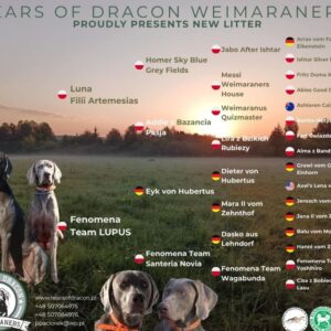 Dopiero możliwość skorzystania ze sprawdzonego reproduktora, analiza jego przychówku i użytkowości i zgodność z naszym spojrzeniem na historię rasy spowodowały decyzję o drugim i zarazem ostatnim miocie naszej wspaniałej Luny. Spełniamy hodowlane marzenia piątym miotem w naszej hodowli (w tym roku mija nam 15 lat z rasą wyżłów weimarskich).