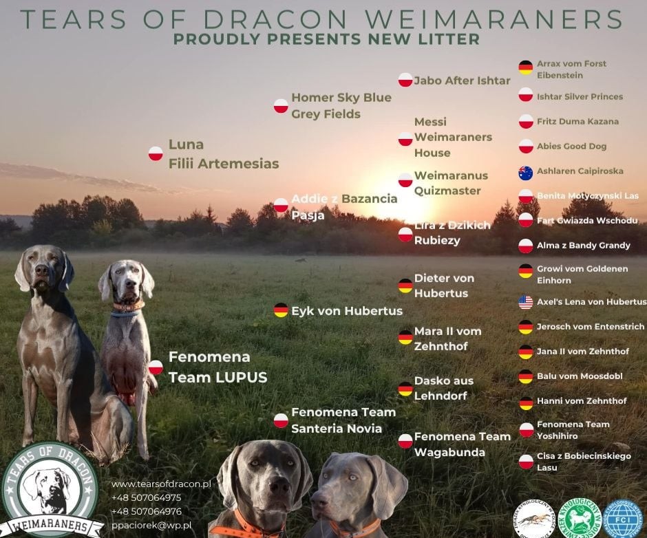 Dopiero możliwość skorzystania ze sprawdzonego reproduktora, analiza jego przychówku i użytkowości i zgodność z naszym spojrzeniem na historię rasy spowodowały decyzję o drugim i zarazem ostatnim miocie naszej wspaniałej Luny. Spełniamy hodowlane marzenia piątym miotem w naszej hodowli (w tym roku mija nam 15 lat z rasą wyżłów weimarskich).