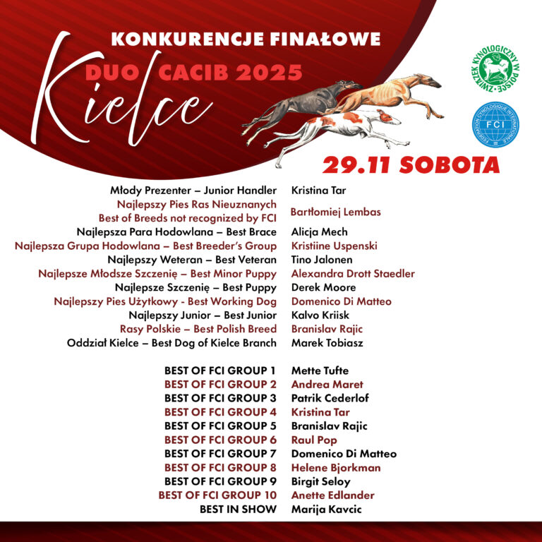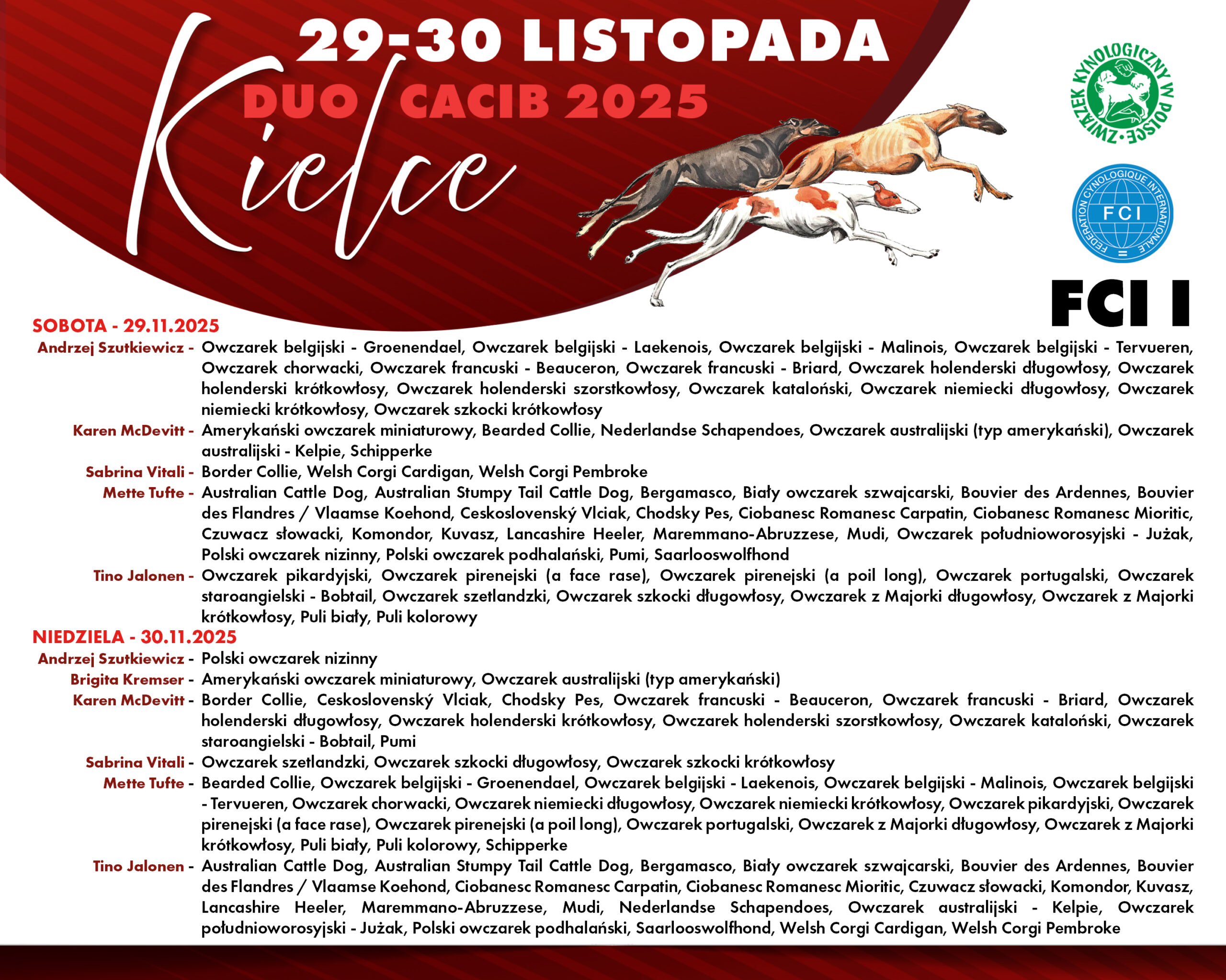 DUO CACIB Międzynarodowe Wystawy Psów Rasowych w Kielcach (29-30.11.2025r.)